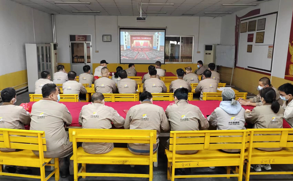 ![]() 中色奧博特板帶黨支部收看現(xiàn)場 |